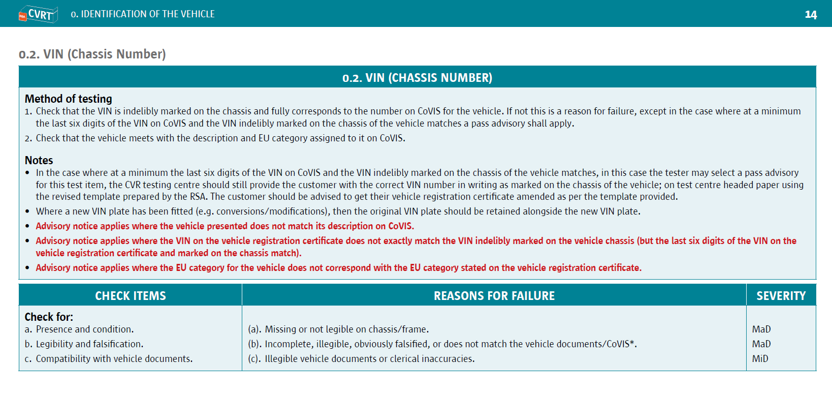 - Notes – The new testers’ manuals have improved ‘Notes’ that provide clear and relevant guidance to the CVR tester when inspecting a vehicle. The notes were formulated based on common tester queries as well as developments in modern vehicle technologies.