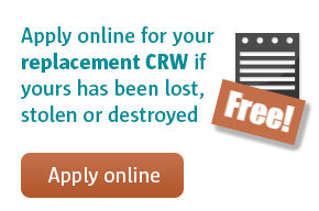 If your CRW has been lost, stoled or destroyed, you can apply online for a replacement CRW.
